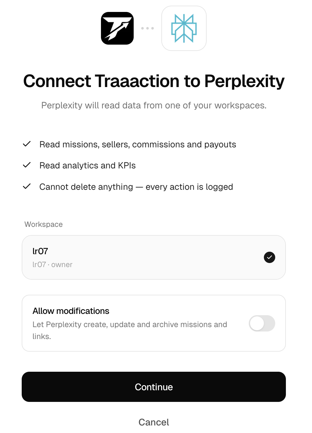 Connect Traaaction to Perplexity — Traaaction Help Center | Traaaction